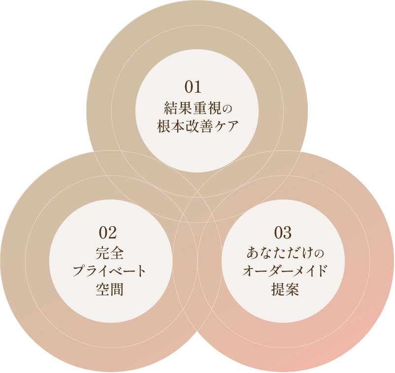 誰の目も気にすることなく、心からリラックスできるあなただけの空間をご用意。お悩みも気兼ねなくご相談いただけます。